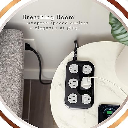 • Aesthetic – The innovative design of the surge protector’s unique round plug, braided fashion cord and modern industrial design is perfect for any stylish or themed home, office, business and more